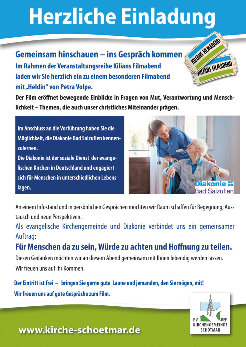 Im Anschluss an die Vorführung haben Sie die Möglichkeit, die Diakonie Bad Salzuflen kennenzulernen.