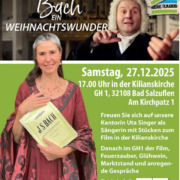 Aus der Gemeinde„Träumerei, Mondschein, Abendzeit und Ewigkeit“ Sonntag, 16.11. um 16.00 Uhr in der ev.-ref. Kilianskirche in Schötmar, der Eintritt ist frei. Die Kantorei der ev.-ref. Kilianskirche lädt zu einem besinnlich-träumerischen Konzert ein. Zu hören sind bekannte Abendlieder, Kanons und Chormusik zur „Abendzeit und Ewigkeit“. Die Pianistin Doris Findorff-Rasche begleitet die Kantorei und entführt das Publikum […]