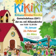 Aus der GemeindeLiebe Kinder & liebe Eltern! Die KiliansKinderKirche (KiKiKi) findet (in der Regel) an jedem dritten Sonntag im Monat ab 10.00 Uhr in der evangelischen Kilianskirche statt. (Maßgeblich sind dabei immer die Termine auf den aktuellen Plakaten.) Die Kinder beginnen gemeinsam mit den Erwachsenen im Gottesdienst in der Kilianskirche. Von dort gehen sie zusammen mit den […]