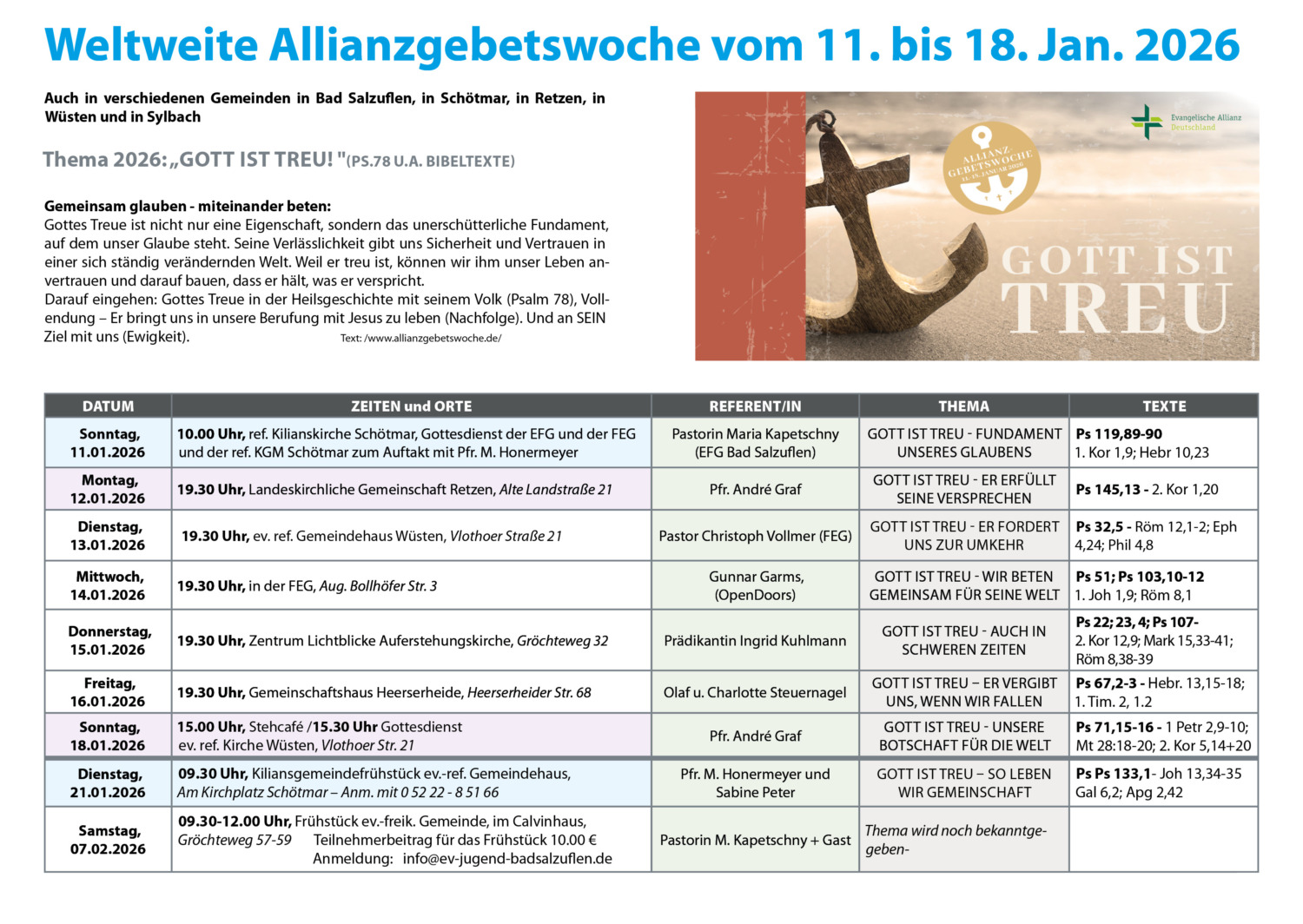 Regulärer Gottesdienst in der Kilianskirche: jeden Sonntag, 10:00 Uhr. Weitere Informationen zu Gottesdiensten finden Sie in unserer Übersicht.